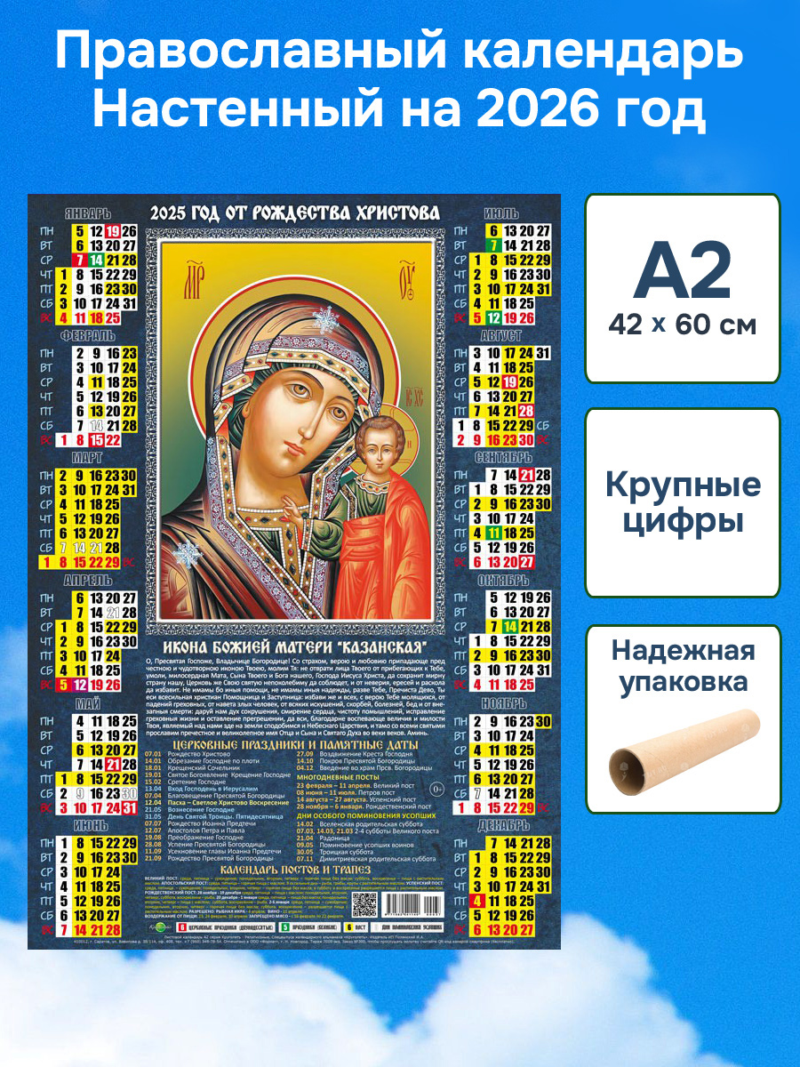 Большой православный настенный листовой календарь: Икона Божией Матери Казанская