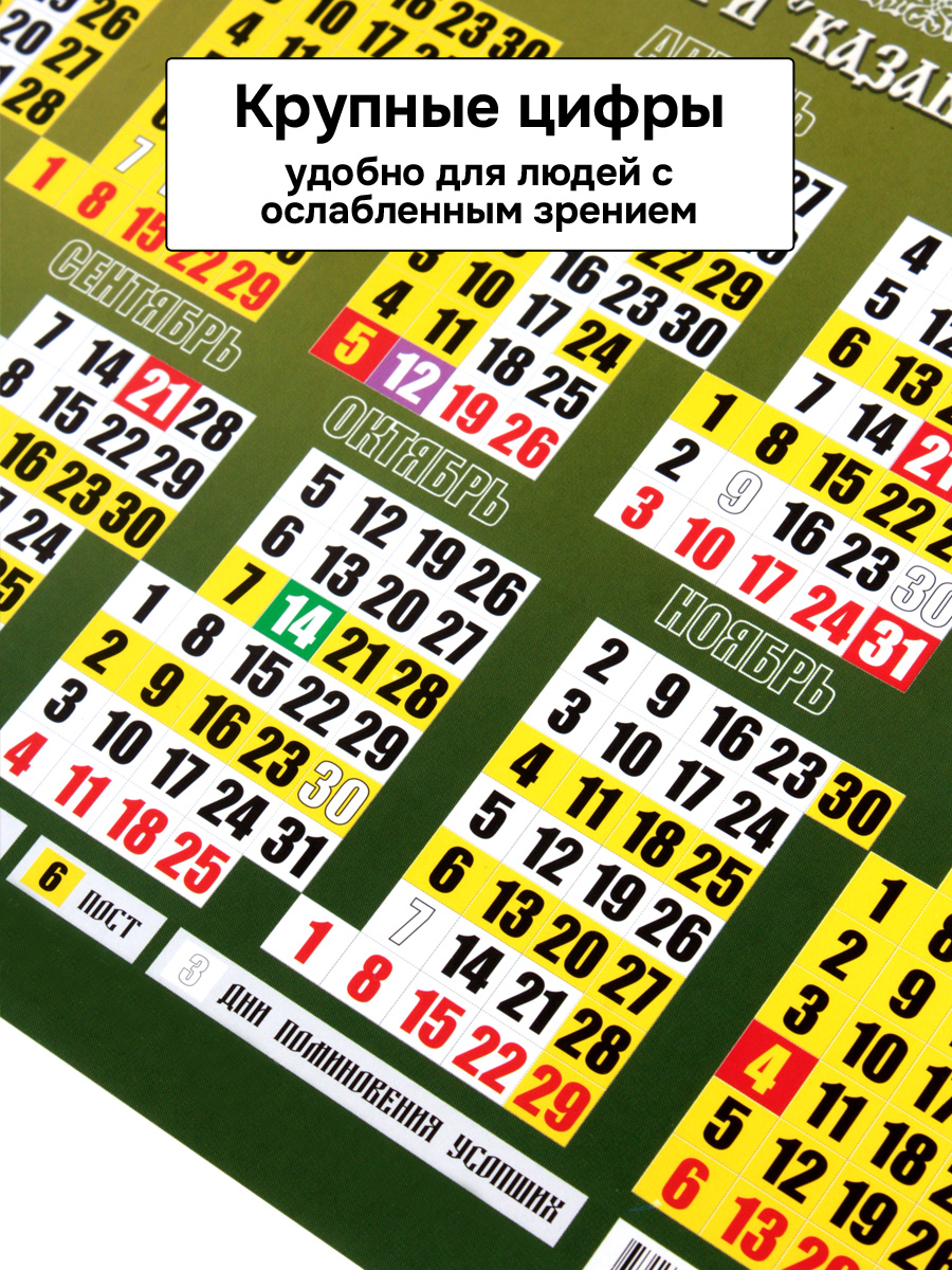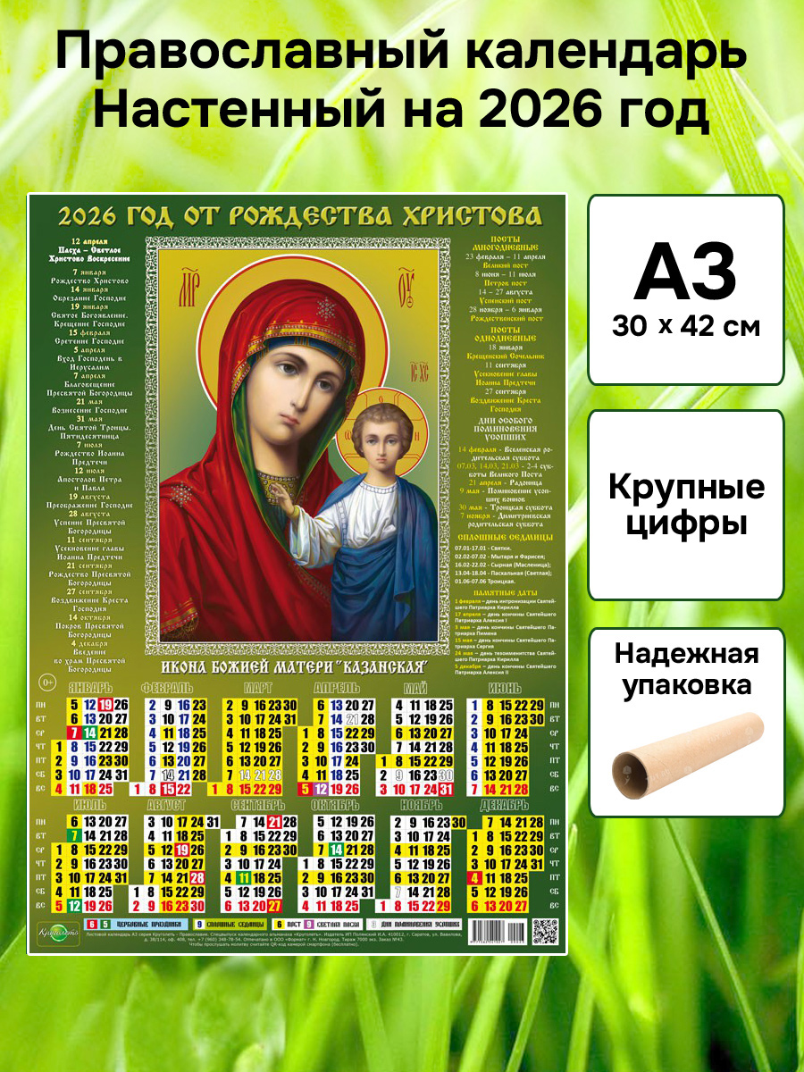 А3 формат, размер церковного календаря плаката: 30 на 42 см.
