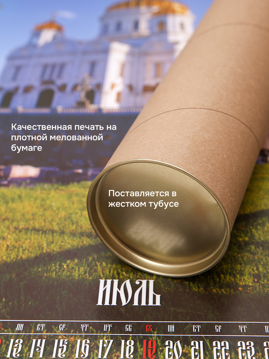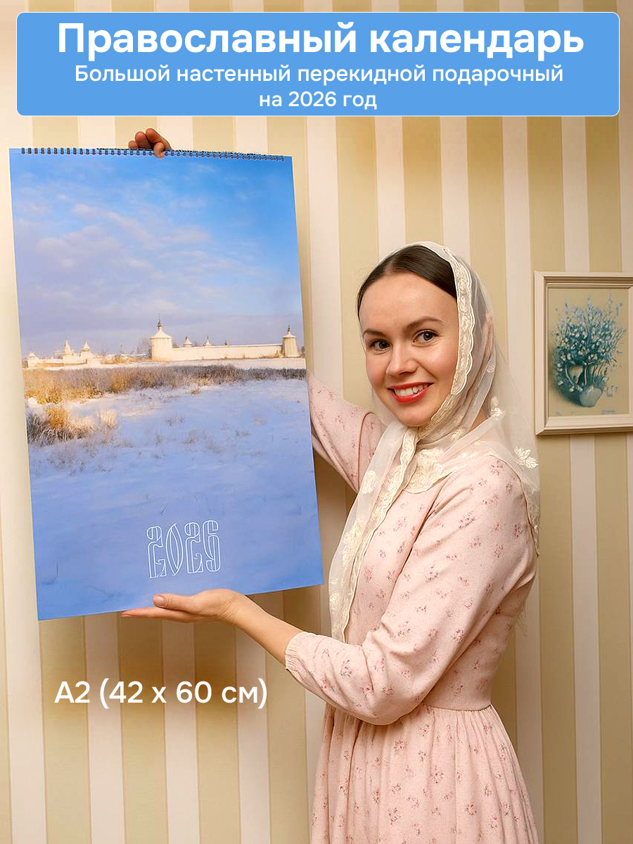 Православный настенный перекидной календарь на 2026 год. Большой А2 формат: 42 x 60 см. Тема: "Монастыри и Храмы России". Замечательные фотографии и яркая печать на плотной мелованной бумаге. Календарь состоит из 12 листов, которые соединены крепкой пружиной. Для крепления на стену предусмотрено проволочное "ушко" (ригель). Отправляется в жестком картонном тубусе, надежно сохраняющем календарь во время транспортировки.