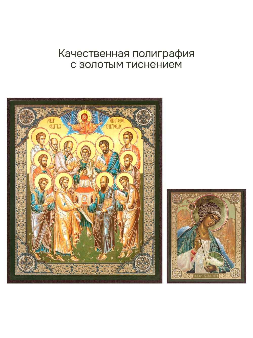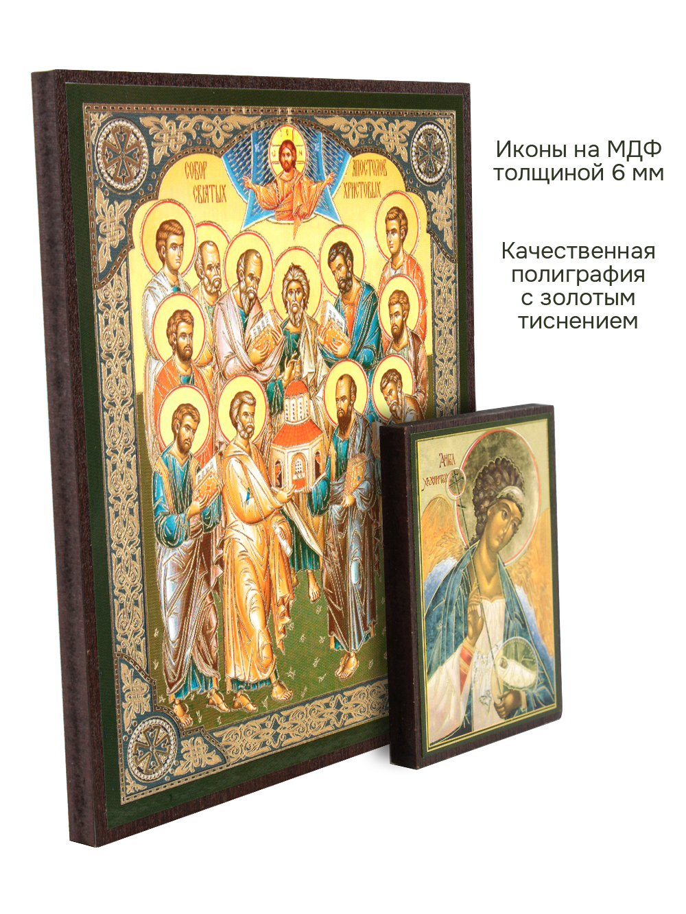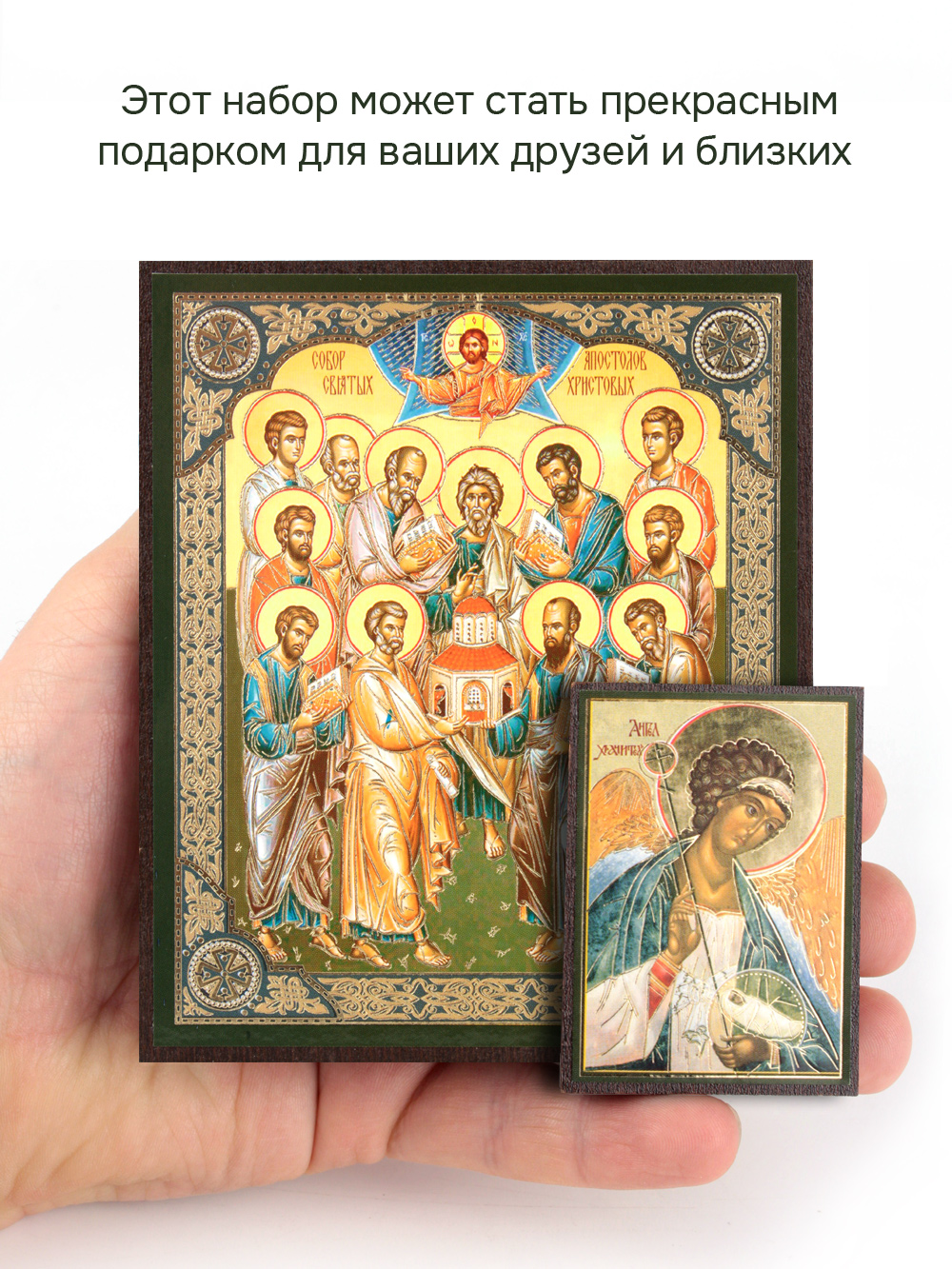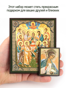 Предлагаем приобрести набор из двух освященных икон, который состоит из иконы собор двенадцати Апостолов и иконы Ангела-Хранителя.