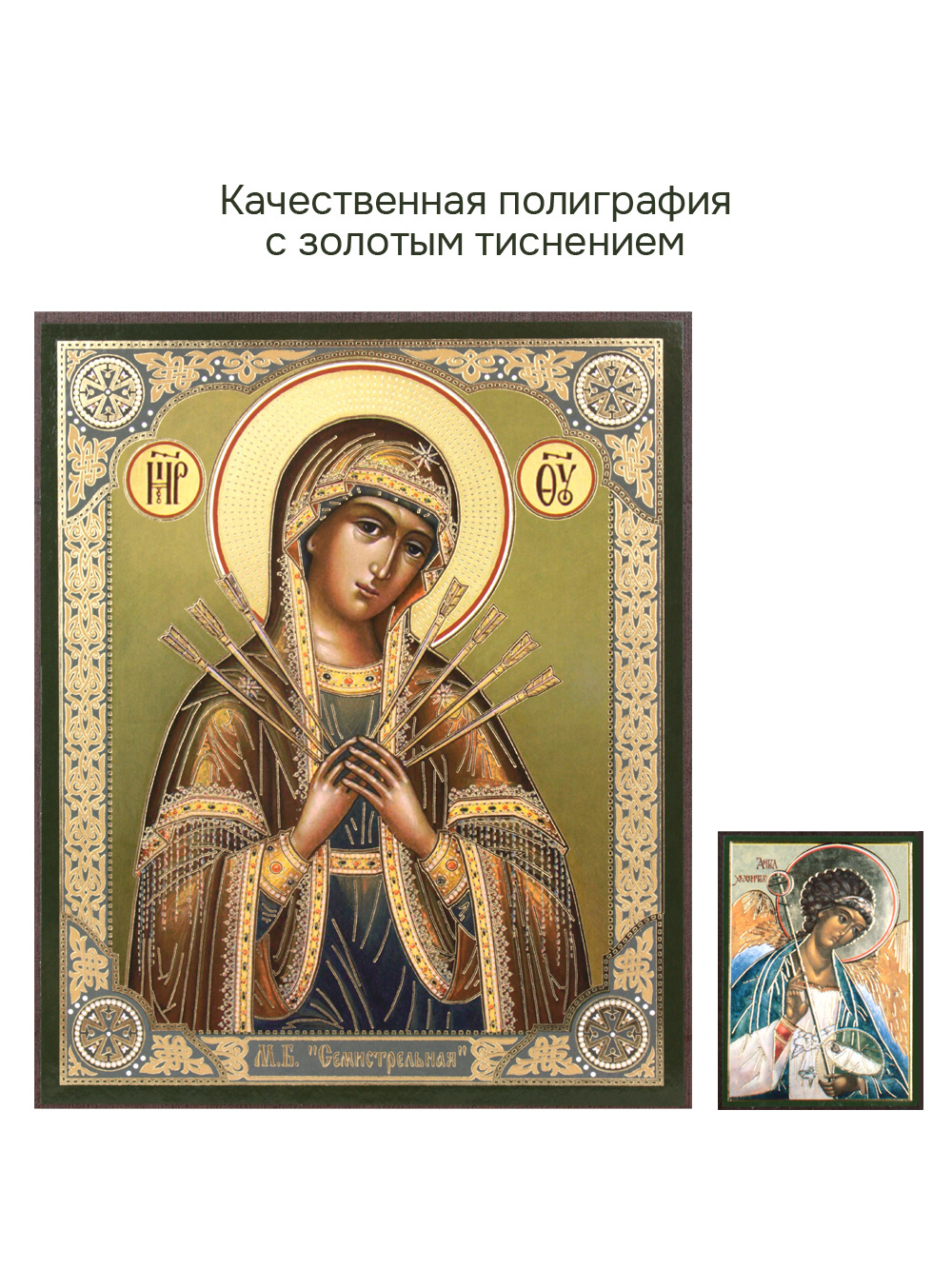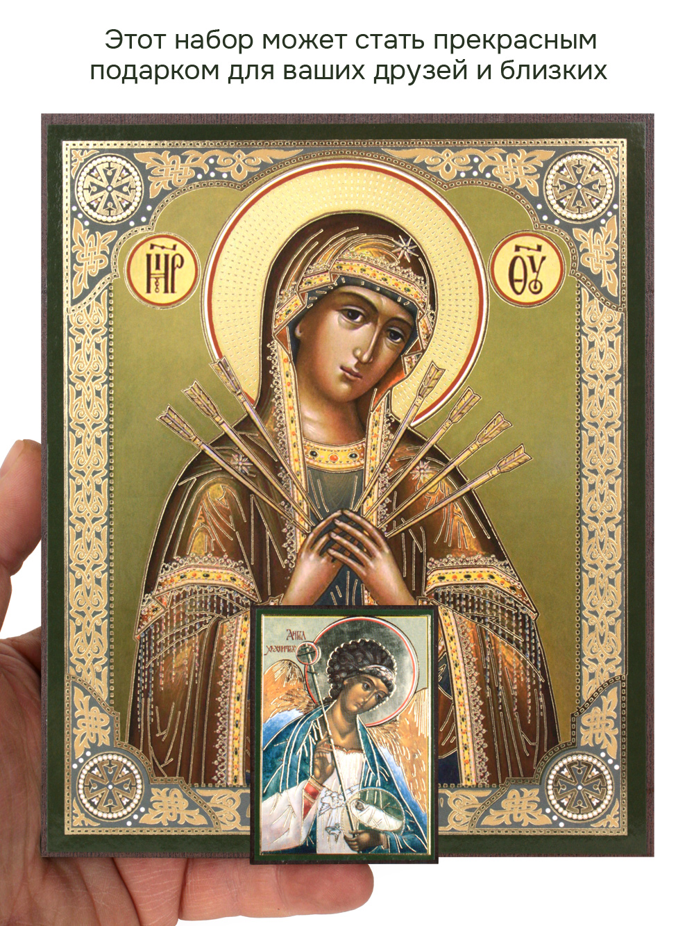 Предлагаем приобрести набор из двух освященных икон: Пресвятой Богородицы Семистрельная и иконы Ангела-Хранителя.