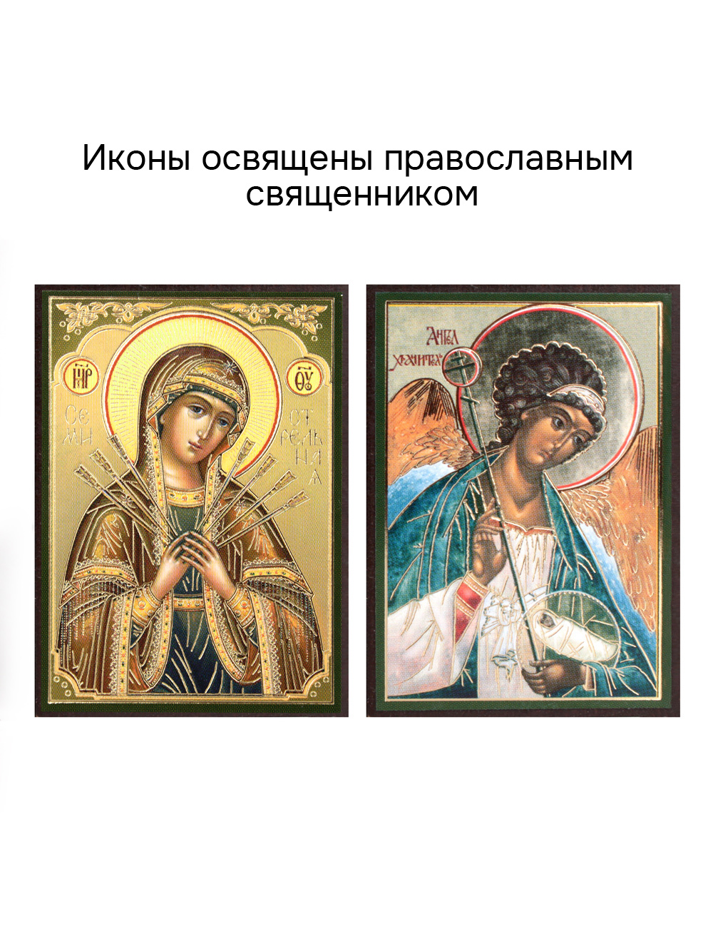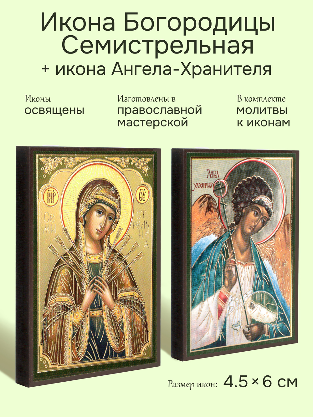 Предлагаем приобрести набор из двух освященных икон: Пресвятой Богородицы Семистрельная и иконы Ангела-Хранителя.