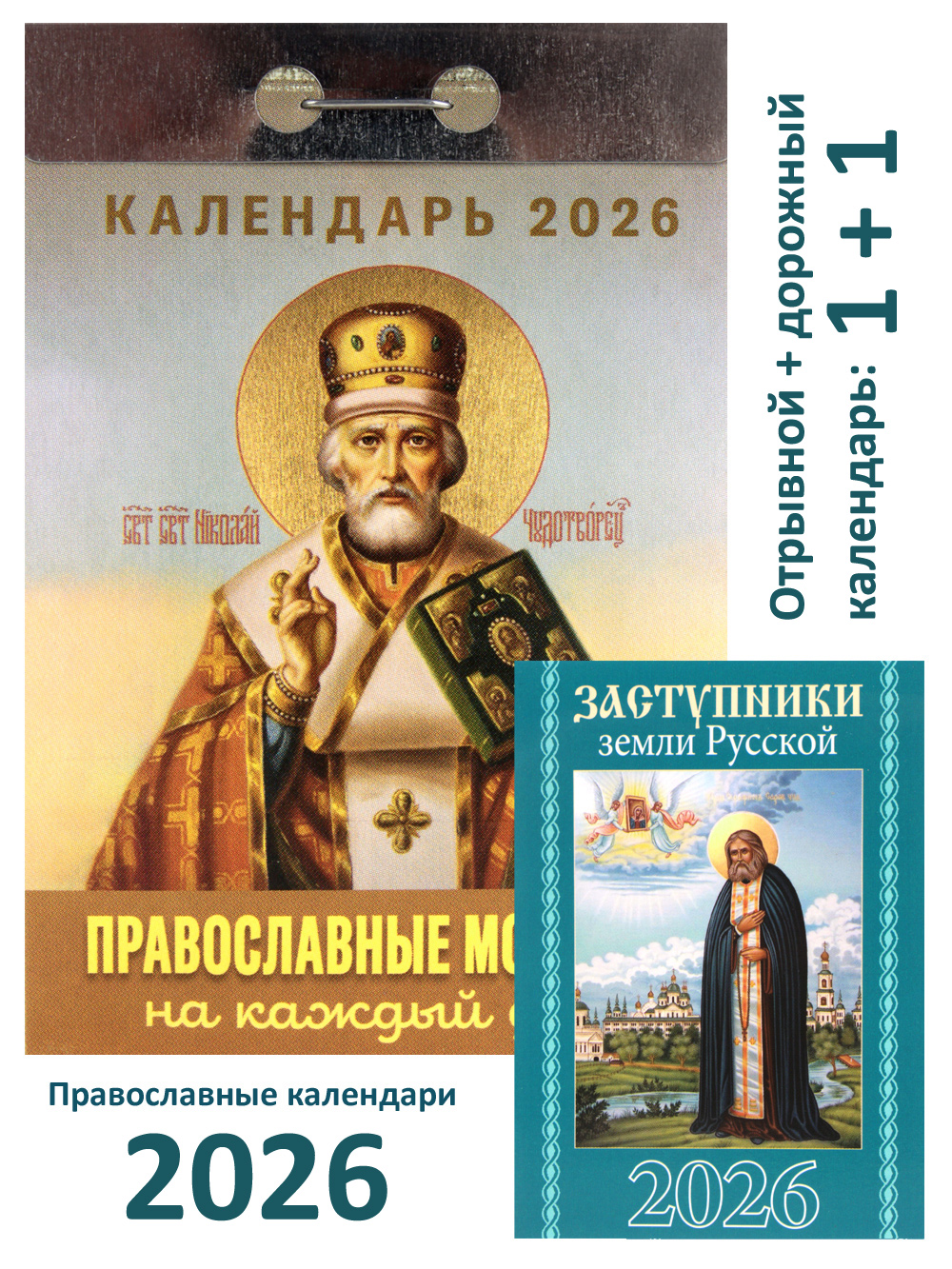 Набор из 2-ух православных календарей на 2026 год: настенный перекидной 18x25 см + 4 карманных