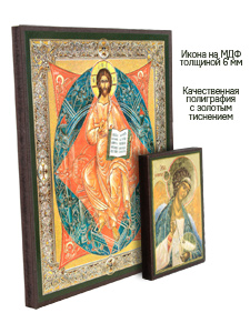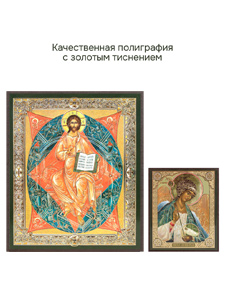 Иконы изготовлены на МДФ толщиной 6 мм. Размер основной иконы: 10.5 x 12.5 см, малой иконы Ангела-Хранителя: 4 x 6 см. Изображения икон выполнены с использованием полиграфической печати с золотым тиснением, дополнительно защищены ламинацией от внешних воздействий. Иконы отправляются в плотной коробке, что гарантирует их сохранность при транспортировке.