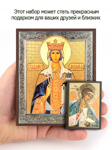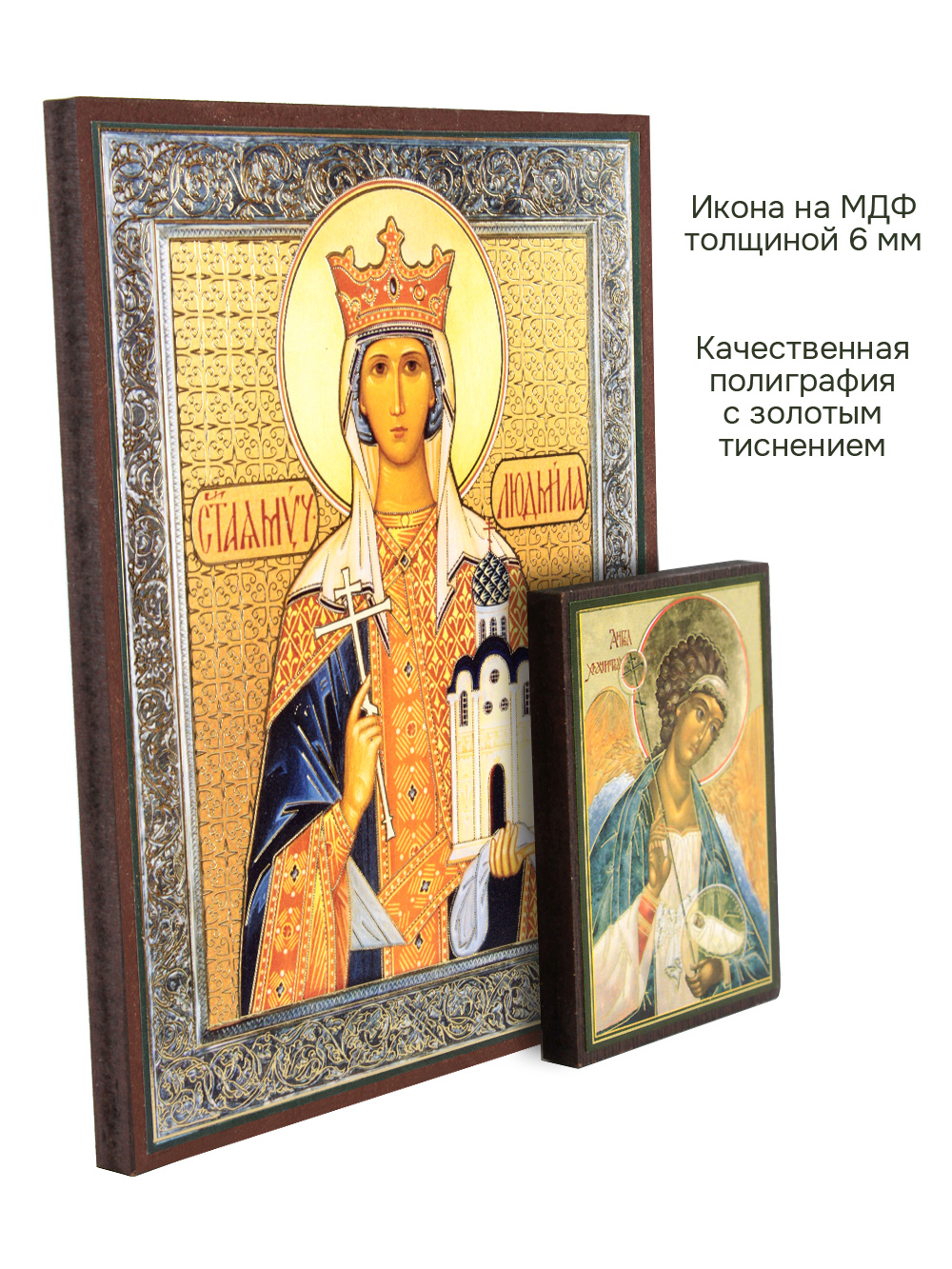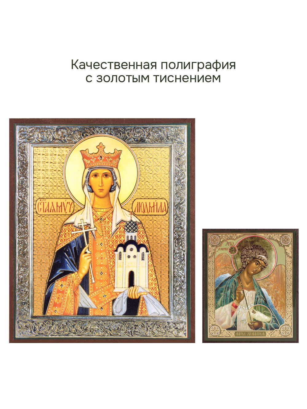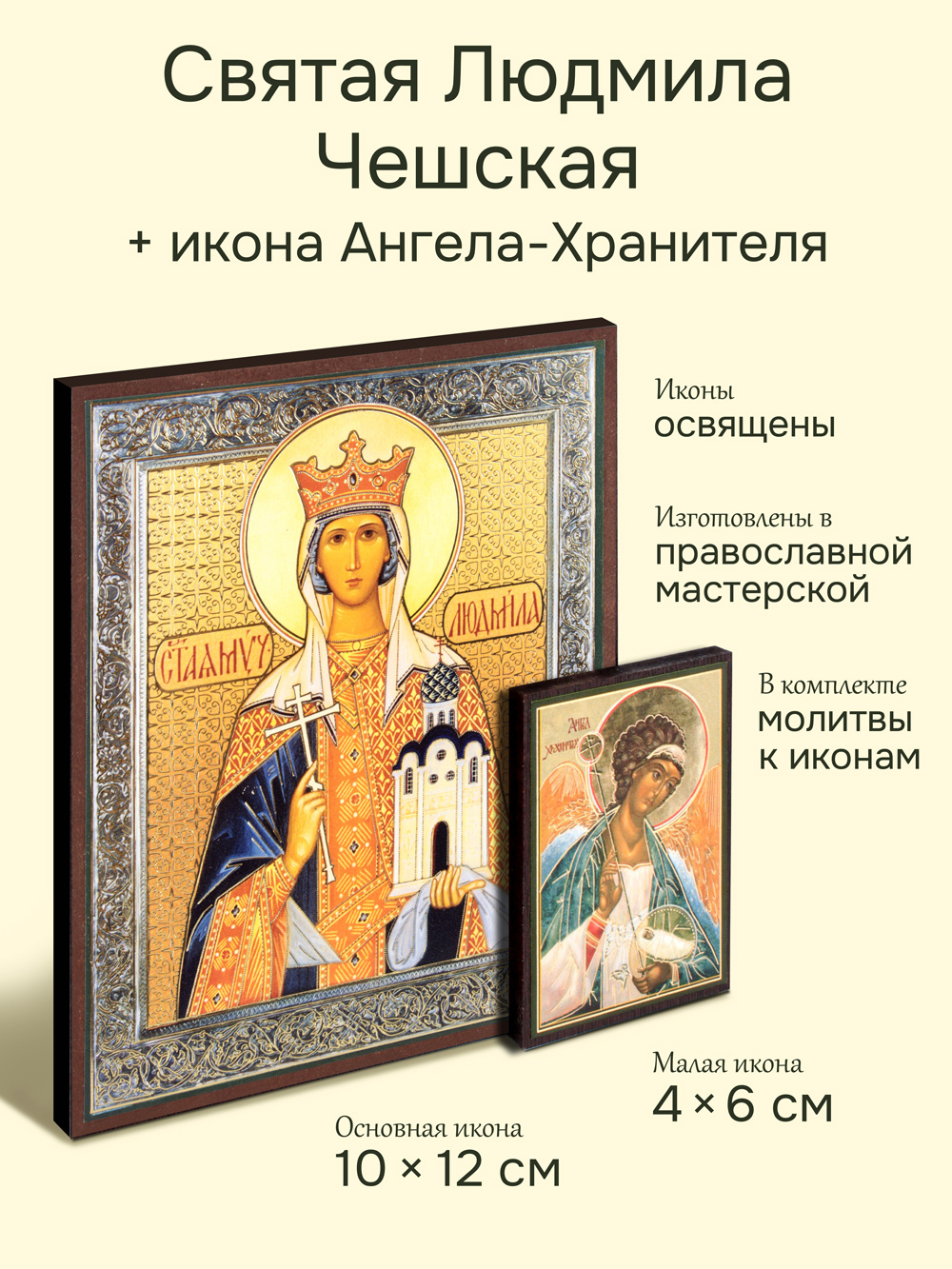 Предлагаем приобрести набор из двух освященных икон, который состоит из иконы святой мученицы Людмилы Чешской и иконы Ангела-Хранителя.