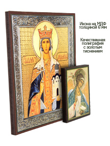 Иконы изготовлены на МДФ толщиной 6 мм. Размер основной иконы: 10.5 x 12.5 см, малой иконы Ангела-Хранителя: 4 x 6 см. Изображения икон выполнены с использованием полиграфической печати с золотым тиснением, дополнительно защищены ламинацией от внешних воздействий. Иконы отправляются в плотной коробке, что гарантирует их сохранность при транспортировке.