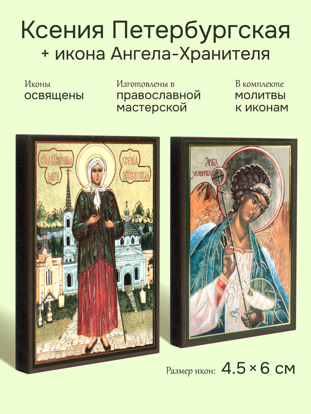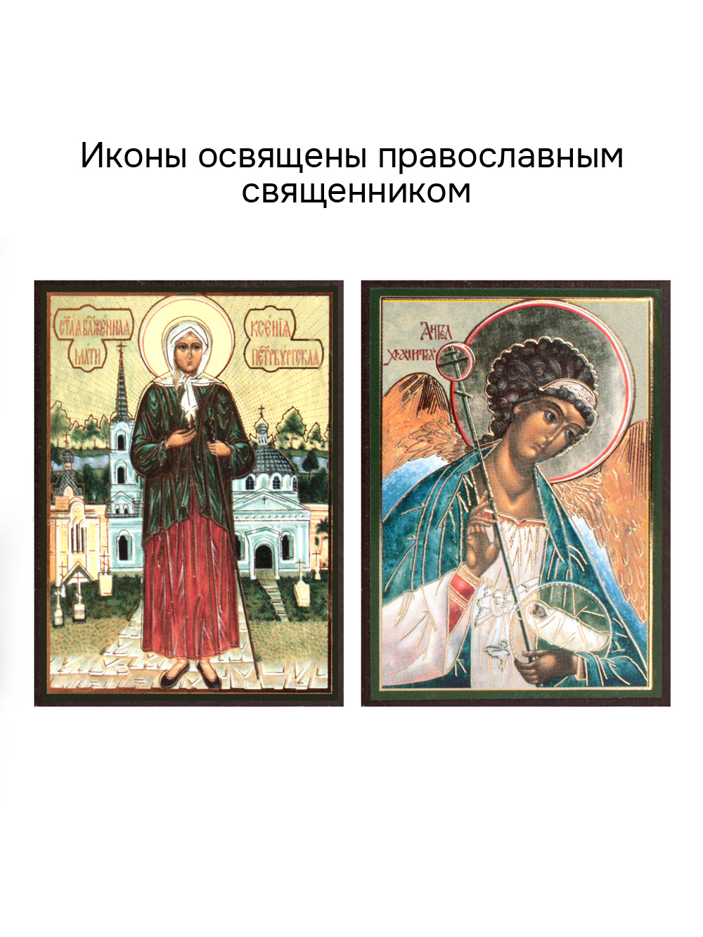 Предлагаем приобрести набор из двух освященных икон, который состоит из иконы блаженной Ксении Петербургской и иконы Ангела-Хранителя.