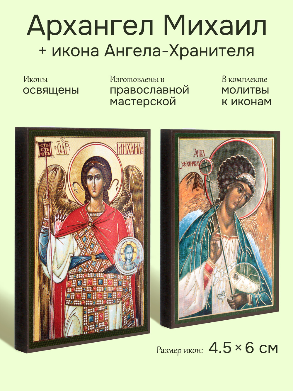 Предлагаем приобрести набор из двух освященных икон, который состоит из иконы архангела Михаила и иконы Ангела-Хранителя.