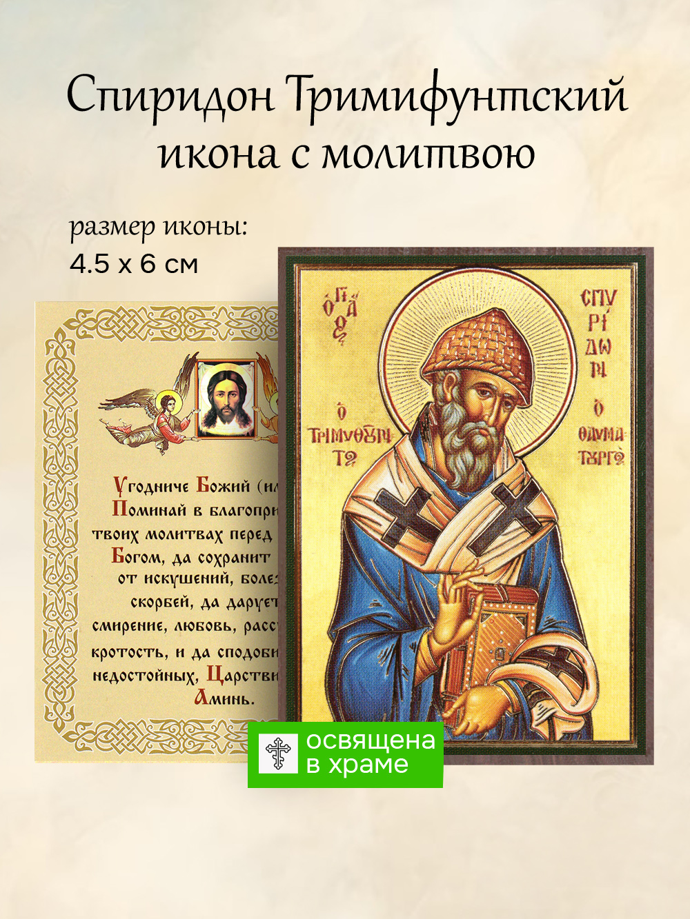 Икона святителя Спиридона Тримифунтского освященная, маленькая