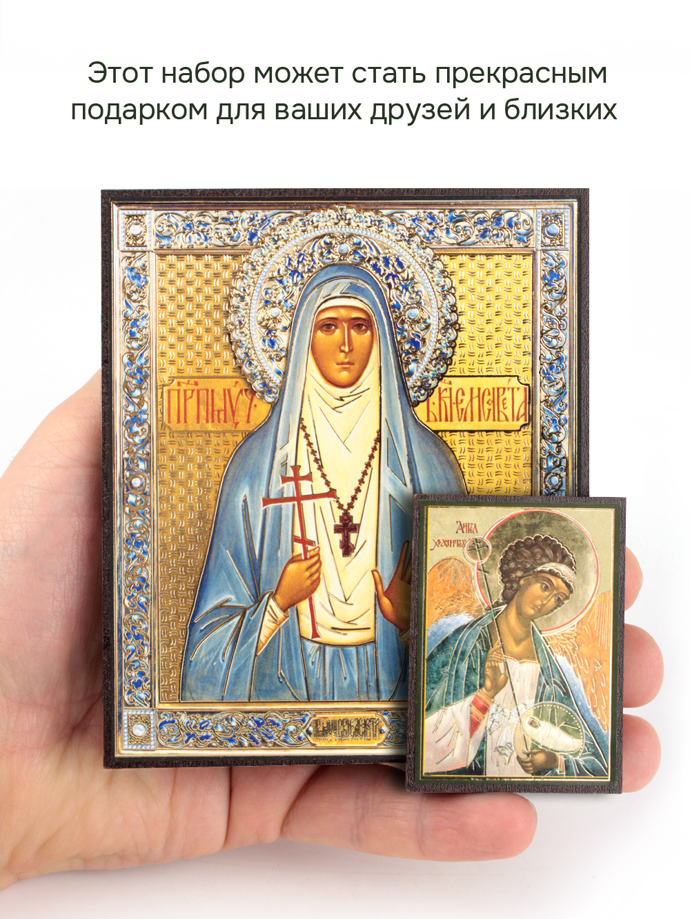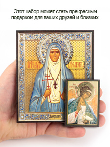 Предлагаем приобрести набор из двух освященных икон, который состоит из иконы святой мученицы княгини Елизаветы Федоровны и иконы Ангела-Хранителя.