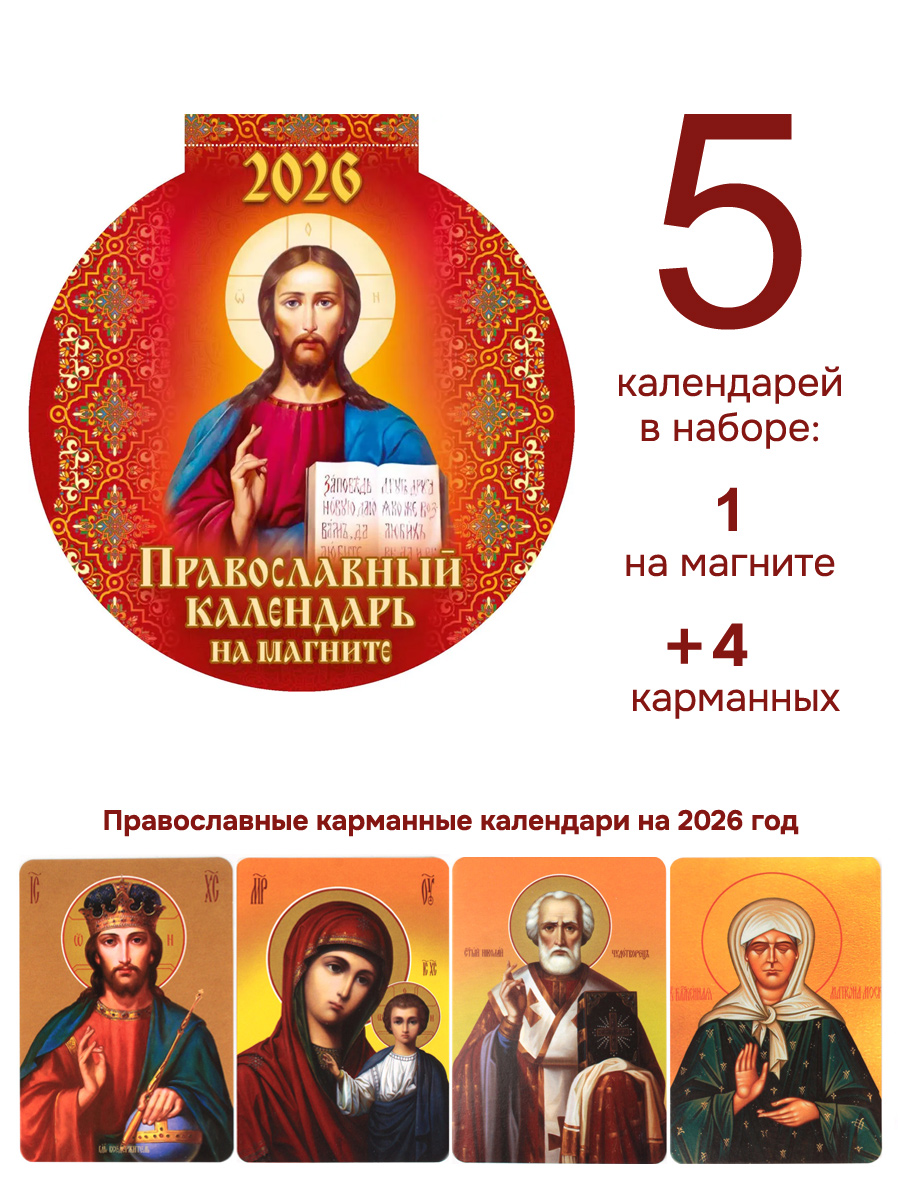 Набор из 2-ух православных календарей на 2026 год: на магните + 4 карманных