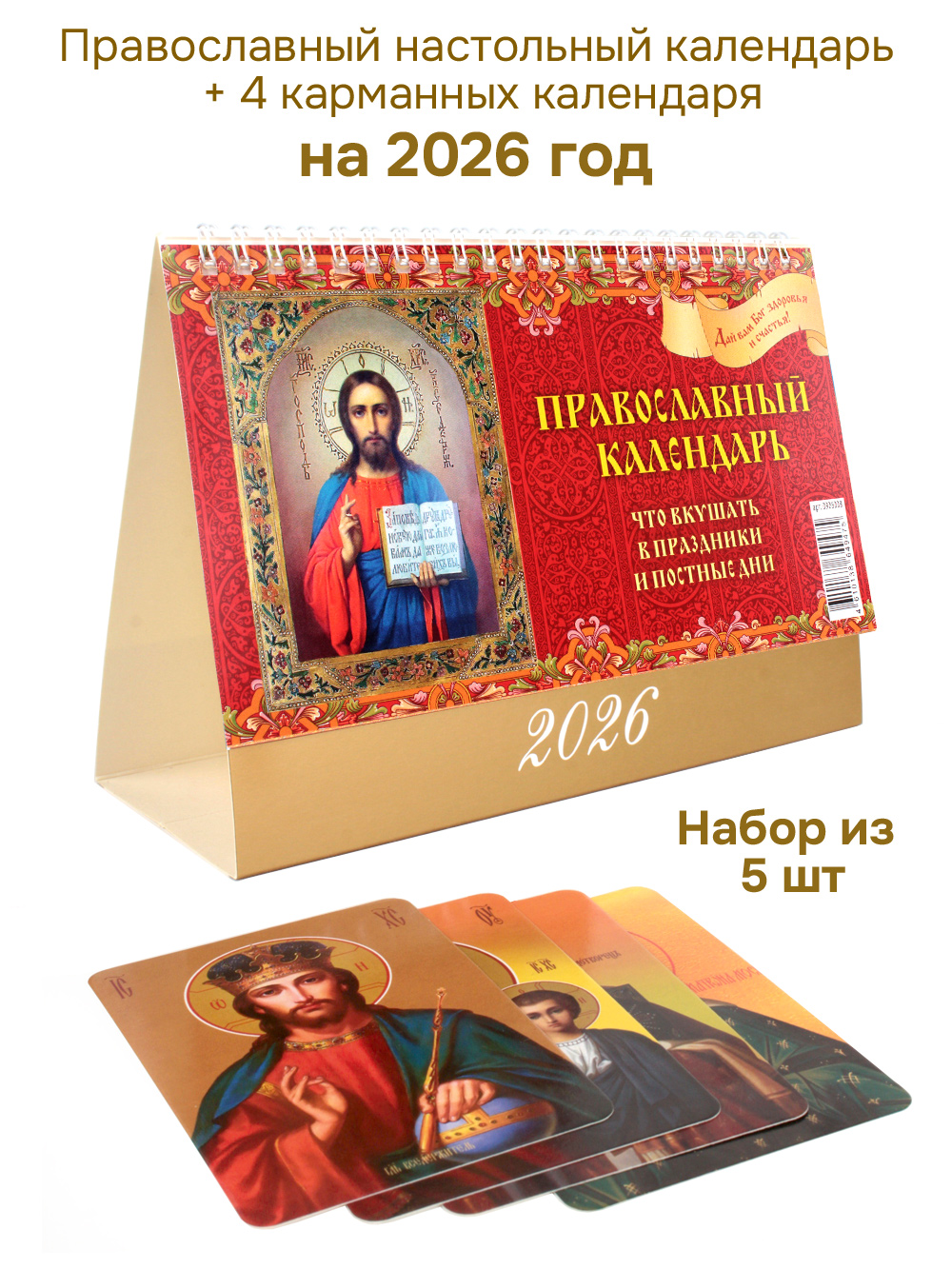 Набор из 2-ух православных календарей на 2026 год: настольный + 4 карманных