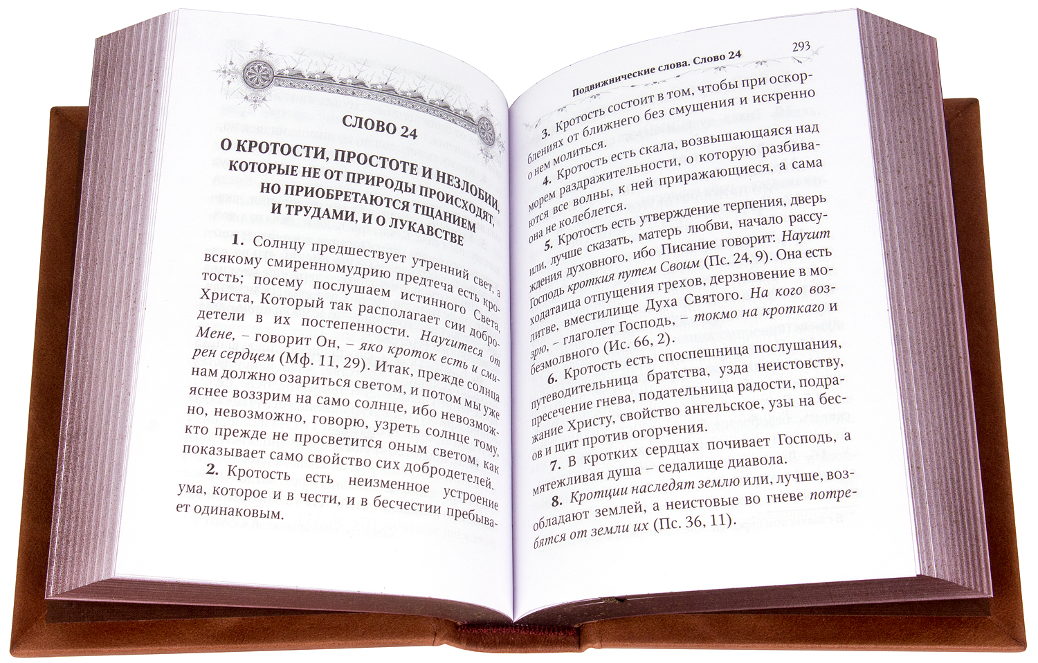 Предисловие Краткое описание жития аввы Иоанна, составленное монахом раифским Даниилом, мужем честным и добродетельным О том же авве Иоанне, игумене Синайской горы, то есть Лествичнике Послание святого Иоанна, игумена Раифского, к досточудному Иоанну, игумену Синайской горы Ответ ПОДВИЖНИЧЕСКИЕ СЛОВА аввы Иоанна, игумена монахов Синайской горы, посланные им к авве Иоанну, игумену Раифскому, который побудил его к сему сочинению Слово 1. Об отречении от жития мирского Слово 2. О беспристрастии, то есть отложении попечений и печали о мире Слово 3. О странничестве, то есть уклонении от мира ▪ О сновидениях, бывающих новоначальным Слово 4. О блаженном и приснопамятном послушании ▪ О разбойнике покаявшемся ▪ Об Исидоре ▪ О Лаврентии ▪ Об экономе ▪ Об Аввакире ▪ Об архидиаконе Македонии ▪ О преподобном Мине ▪ О первом обольщении ▪ О втором обольщении ▪ О преподобном Акакии ▪ Об Иоанне Савваите или Антиохе Слово 5. О попечительном и действительном покаянии и также о житии святых осужденников, и о Темнице Слово 6. О памяти смерти Слово 7. О радостотворном плаче Слово 8. О безгневии и кротости Слово 9. О памятозлобии Слово 10. О злословии и клевете Слово 11. О многоглаголании и молчании Слово 12. О лжи Слово 13. Об унынии и лености Слово 14. О любезном для всех и лукавом владыке чреве Предисловие к 15-му слову. О человеках, во плоти живущих подобно бесплотным4 Слово 15. О нетленной чистоте и целомудрии, которое тленные приобретают трудами и потами Слово 16. О сребролюбии Слово 17. О нестяжании Слово 18. О нечувствии, т. е. об омертвении души, и о смерти ума, предваряющей смерть тела Слово 19. О сне, о молитве и псалмопении в соборе братий Слово 20. О бдении телесном: как мы чрез него достигаем духовного, и как должно оное проходить Слово 21. О малодушной боязливости, или страховании Слово 22. О многообразном тщеславии Слово 23. О безумной гордости ▪ О неизъяснимых хульных помыслах Слово 24. О кротости, простоте и незлобии, которые не от природы происходят, но приобретаются тщанием и трудами, и о лукавстве Слово 25. Об искоренителе страстей, высочайшем смиренномудрии, бывающем в невидимом чувстве Слово 26. О рассуждении помыслов и страстей, и добродетелей ▪ О благорассмотрительном рассуждении Краткое содержание предыдущих слов Слово 27. О священном безмолвии души и тела ▪ О различных видах безмолвия ▪ О различных видах безмолвия Слово 28. О матери добродетелей, священной и блаженной молитве, и о предстоянии в ней умом и телом Слово 29. О земном небе, или о богоподражательном бесстрастии и совершенстве, и воскресении души прежде общего воскресения Слово 30. О союзе трех добродетелей, то есть о вере, надежде и любви Краткое увещевание, которое содержит в себе все то, что говорено было в сей книге пространно