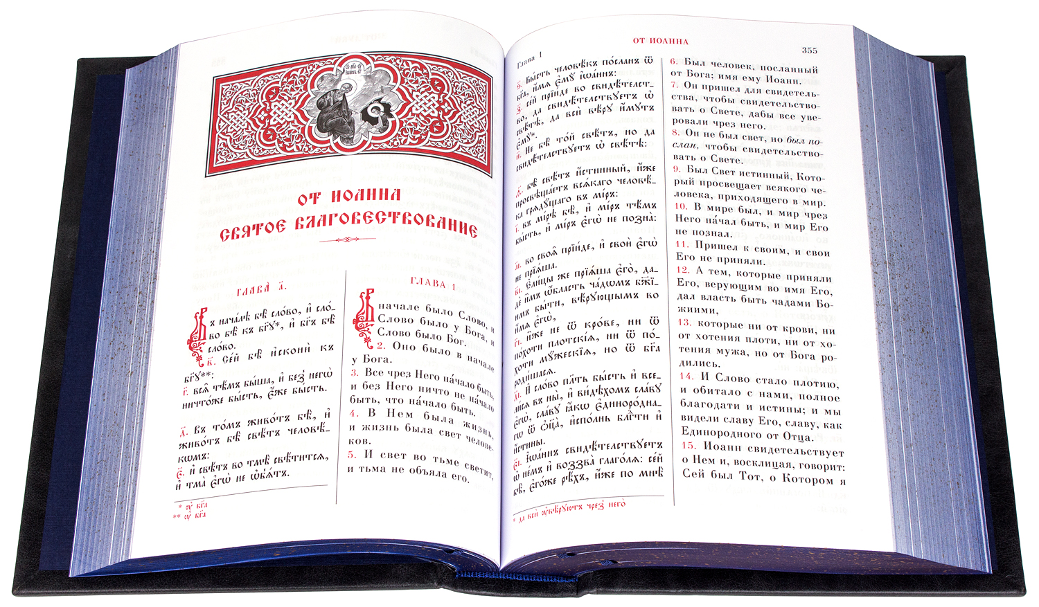 Прекрасное издание Нового Завета большого формата, напечатана на качественной офсетной бумаге в двух цветах и украшена орнаментами и узорными буквицами. Для удобного чтения и понимания Нового Завета, текст разделен на две колонки, на церковно-славянский и русский языки.