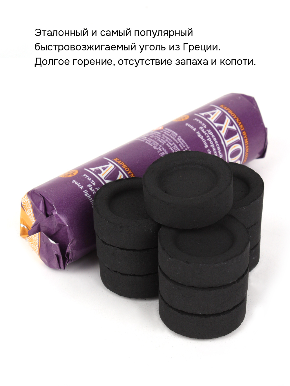 Уголь кадильный бездымный греческий Axios, диаметром 40 мм. 1 туба по 10 таблеток, т.е. всего 10 шт. Время розжига составляет не более 10 секунд. Тлеет до 45 - 60 минут. Эталонный и самый популярный быстровозжигаемый уголь из Греции. После розжига легкий и плотный продукт, с равномерной консистенцией, ведет себя безупречно - нет каких либо неприятных запахов, тлеет равномерно, не трещит, не искрится и не рассыпается, не обладает повышенной зольностью. Способы применения: 1. С помощью кадильницы: кадильница - это металлическая или керамическая емкость, в которую помещается раскаленный уголек. Поджигаем его и ждем около 10 - 20 секунд. Для розжига лучше всего использовать металлическую подставку или специальные щипцы. Уголь должен покрыться белым пепелком. Когда он разогрелся кладем его в кадильницу и насыпаем немного ладана или благовоний в виде смолы вокруг, и он сразу начинает выделять ароматный дым.